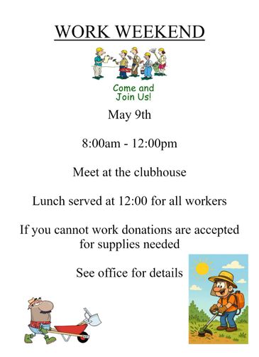 need volunteers and not just on work weekends. Please feel free to contact me with questions or